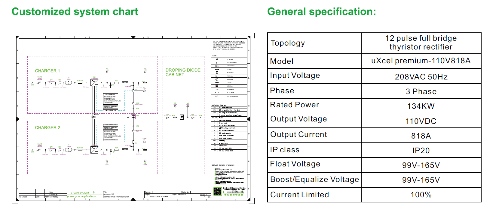 การกำหนดค่าเบรกเกอร์วงจรแบตเตอรี่: เครื่องชาร์จมาพร้อมกับเบรกเกอร์กระแสตรงความจุสูง 1250A ซึ่งให้การป้องกันที่จำเป็นสำหรับระบบแบตเตอรี่ ในกรณีที่เกิดไฟฟ้าลัดวงจรหรือโหลดเกิน เบรกเกอร์จะตัดวงจรอย่างรวดเร็วเพื่อป้องกันแบตเตอรี่ร้อนจัด บวม หรือแม้กระทั่งไฟไหม้และระเบิด เบรกเกอร์วงจรยังสามารถควบคุมด้วยมือได้ เพื่อการบำรุงรักษาและซ่อมบำรุงระบบแบตเตอรี่ที่ง่ายดาย