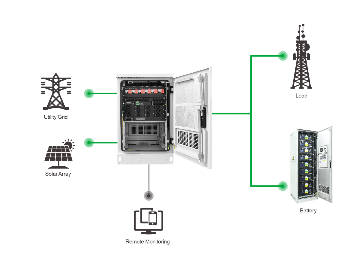 การจัดการพลังงานประสิทธิภาพสูง: โมดูลตัวเรียงกระแสมีค่าตัวประกอบกำลังไฟฟ้าขาเข้า 0.99 และประสิทธิภาพมากกว่า 96% ขณะที่โมดูลโฟโตวอลตาอิกก็มีประสิทธิภาพ 96% เช่นกัน ทั้งสองโมดูลมีขนาดกะทัดรัด 1U พร้อมความหนาแน่นพลังงานสูงและประสิทธิภาพการประหยัดพลังงาน
