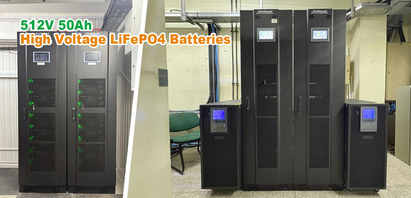 แบตเตอรี่ LiFePO4 แรงดันสูง 512V 50Ah ของ EverExceed ที่ได้รับการปรับแต่งเป็นพิเศษสำหรับศูนย์ข้อมูลแบบรีโนเวท แบตเตอรี่ LiFePO4 เหล่านี้มีความปลอดภัยสูงและประสิทธิภาพการคายประจุที่ยอดเยี่ยม สามารถทดแทนแบตเตอรี่ตะกั่วกรดเดิมได้อย่างสมบูรณ์แบบ พร้อมรับประกันโซลูชันแบตเตอรี่สำรองที่เชื่อถือได้สำหรับศูนย์ข้อมูล