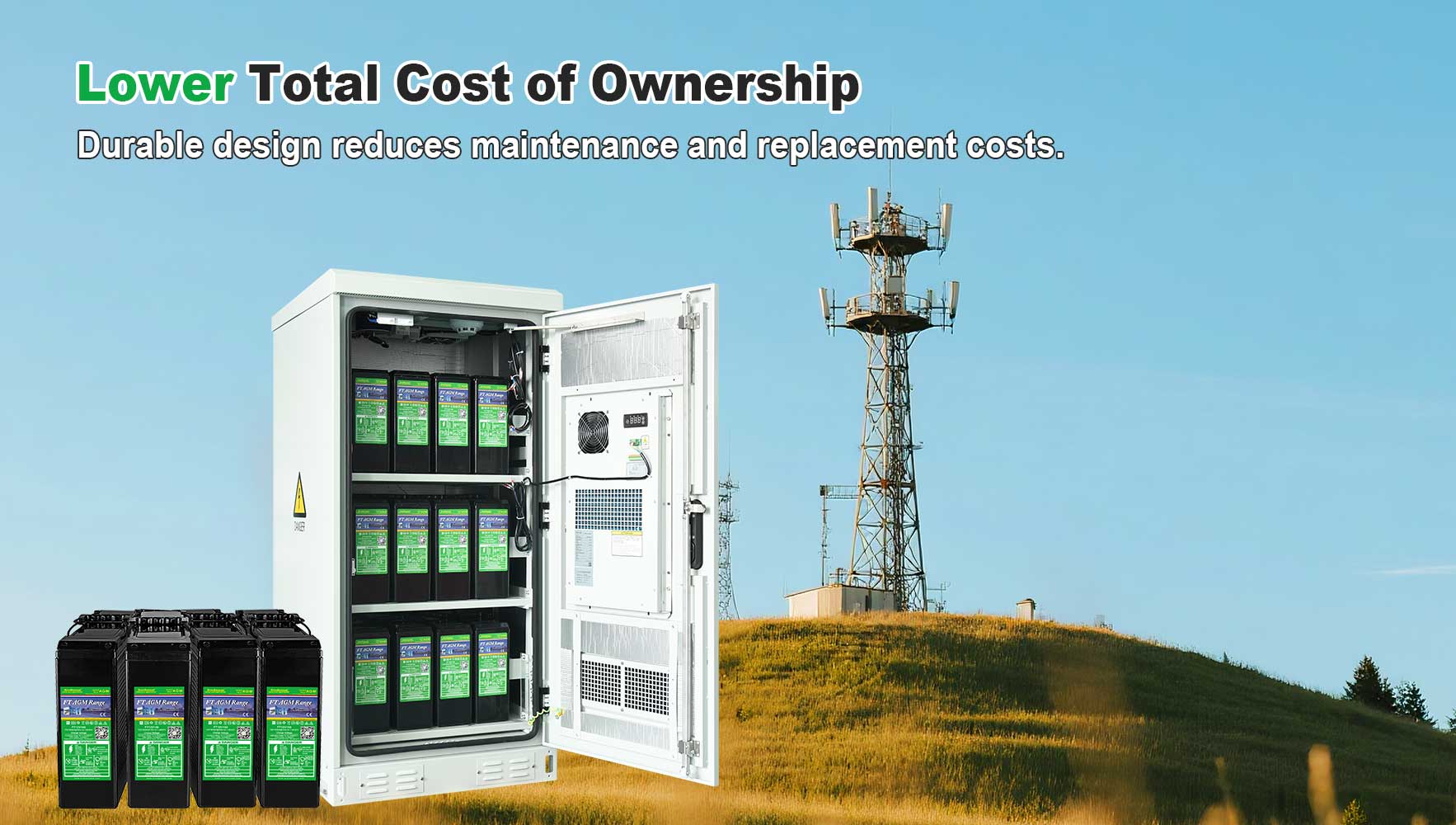 | ความปลอดภัยสูง | การแสดงที่ไม่เหมือนใคร | เทคโนโลยีรีคอมบิแนนท์ VRLA | ||